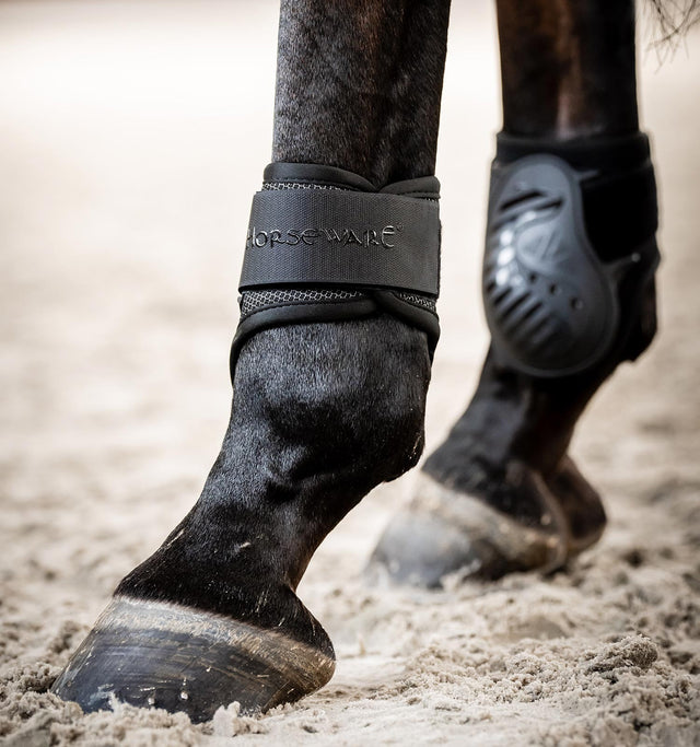 Horseware Pro Bamboo Fetlock Boots combine superior protection with bamboo's natural antibacterial, odor-reducing, and moisture-wicking properties to help keep legs cool, dry, and comfortable. An anatomically contoured, flexible PU shell allows unimpeded range of motion while perforated neoprene-bamboo lining promotes air flow. Velcro straps ensure an adjustable and secure fit. FEI compliant for competition use.