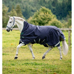 A good choice for horse owners with horses of a narrower build and high withers, the Rambo® Wug waterproof turnout rug incorporates the heightened Surefit Neck Design with V-Front Closure to offer extended freedom of movement so your horse can graze and move at liberty. The robust 1000D ballistic nylon outer boasts exceptional breathable properties, and the anti-static, anti-bacterial, and shine-enhancing lining, keep your horse's skin and coat happy and healthy with regular wear. Other winning rug design features include leg arches for ease of motion, reflective strips for increased visibility, wipe clean tail cord and three adjustable cross surcingles incorporating our Rambo® Safety Surcingle System offering a secure and comfortable fit.