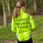 ‘Please Pass Wide and Slow’ is printed on the back.