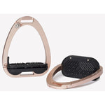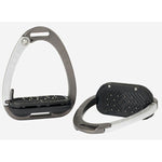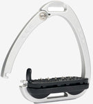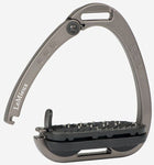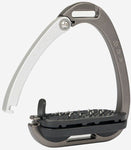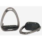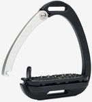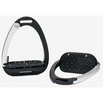 The footplate is supported by a twin-balance arch system that distributes the weight evenly across the base of the stirrup frame. The apex of the frame is recessed and off-set, encouraging a 45° outward orientation which makes it easier for the rider to locate the optimum angle for the foot and regain a lost stirrup.