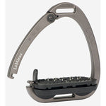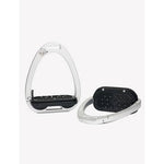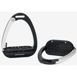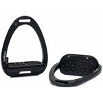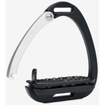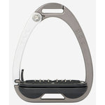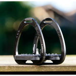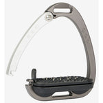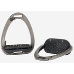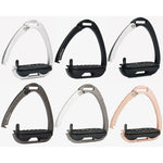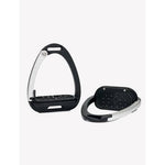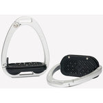 The footplate is supported by a twin-balance arch system that distributes the weight evenly across the base of the stirrup frame. The apex of the frame is recessed and off-set, encouraging a 45° outward orientation which makes it easier for the rider to locate the optimum angle for the foot and regain a lost stirrup.