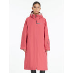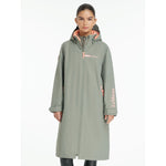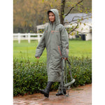 Shelter from the storm in this full-length, oversized, waterproof coat with a moisture-wicking fleece lining. Perfect for riding, changing and even running errands, it's big enough to throw on over clothing and cosy enough to dry off in.