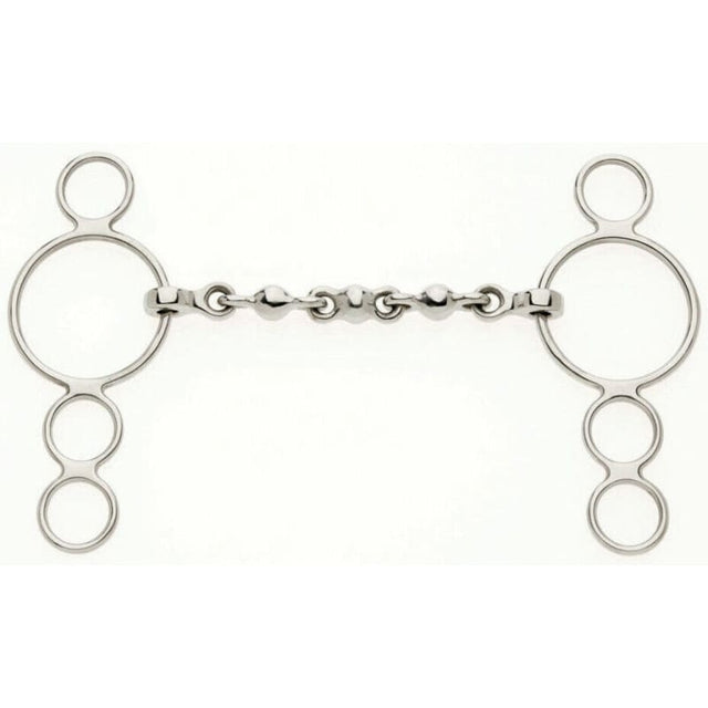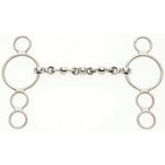 Correctly, the 3 ring bit should be used with two reins, one on the main snaffle ring, and a second on one of the lower smaller rings. Often this bit is only used with one rein on the lower ring, but ideally if only one rein is to be used the bit should be used with roundings to maintain a better contact with the horses mouth.
