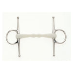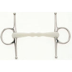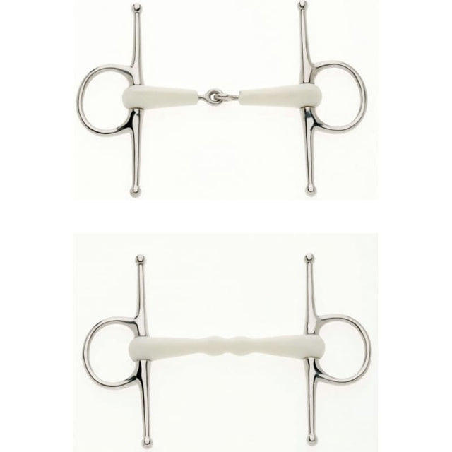 The combination of a softer material in the mouth with it's curved shape, allows the pressure on the bit to be distributed more evenly in the mouth.