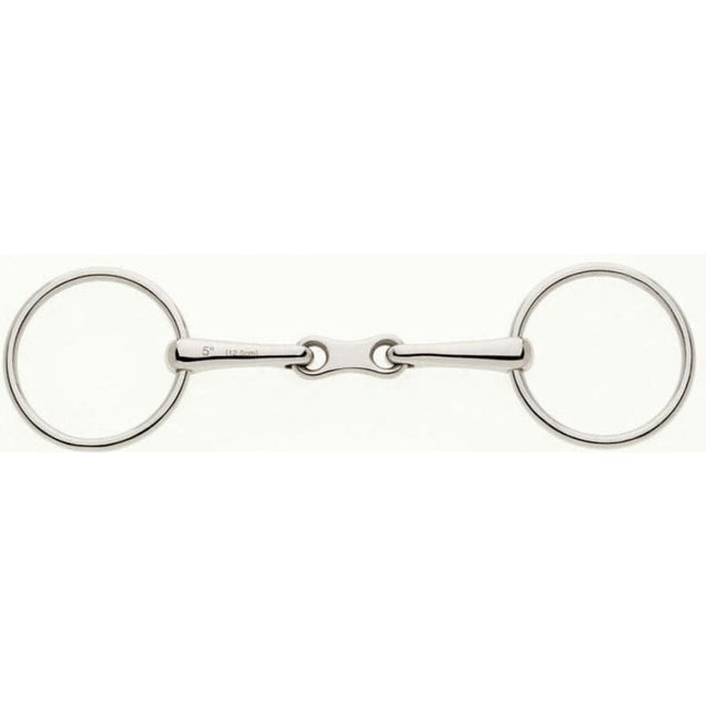 Basic loose ring snaffle bit with the french link added. With thinner mouth piece ideal for horses without much room in the mouth.