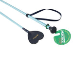 Junior riding whip, 20' light blue with navy web loop and navy keeper in the shape of a heart.