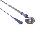 Dressage whip, 39' woven fabric stock with easy-grip twisted rubber handle. Plastic mushroom cap and leather keeper.