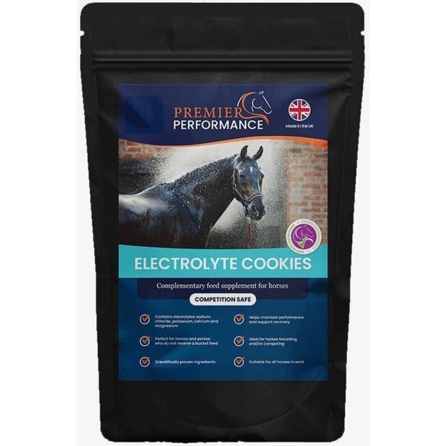 The Electrolyte Cookie is a unique and flexible way of ensuring your horse's electrolyte requirements are met. Contains sodium, chloride, potassium, calcium and magnesium which are essential for maintaining overall health. Electrolytes are important for cardiac function, muscle contraction, dilation of blood vessels, nerve impulse conduction, kidney filtration, gut motility, maintaining internal pH Levels, and hydration. A deficit of these important minerals can result in poor muscle function and performance issues. Horses in work lose electrolytes during sweating. Sweating is a major component of thermoregulation and it is known that electrolytes are lost through sweat. However, electrolytes can also be lost through normal bodily functions (such as urination & defecation) and daily feed, forage and water intakes alone may not meet a horse's required electrolyte requirements; therefore, it is advisable to consider feeding an electrolyte supplement to horses in work, or that sweat a lot, particularly during hot weather. Does not contain chemicals, fillers, binders or other known prohibited substances as defined by the FEI.
