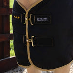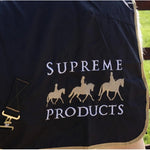 Securely fitted with two sturdy double chest fastenings embellished with ‘Supreme Products’, adjustable cross surcingle straps, as well as a black fillet string, this rug will stay securely in place.