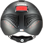 The uvex exxential II LED is the first uvex riding helmet with an innovative lighting system. The integrated LED spots (white at the side, red at the rear) are not visible when in standby mode and are activated at the touch of a button. Another very practical feature of the sporty all-rounder is that it meets standards for both riding and cycling helmets, affording riders perfect protection at all times even when cycling to the stables.