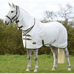 The WeatherBeeta ComFiTec Tyro Mesh Combo Neck fly rug for horses offers a durable soft mesh outer that's breathable with a 210T lining at the shoulders and tail, twin adjustable buckle front closure with touch tape, standard tail flap with low cross surcingles and an adjustable tail cord with quick clip for ease of use.