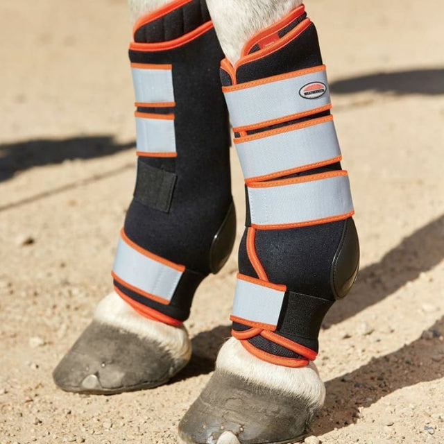 Great for rehab, recovery and preventive maintenance. As well as preventing stocking up in stabled horses. Easy to use leg wraps that have two parts. The outer material is made of strong durable neoprene with four practical touch tape tabs. Inside is a soft, padded ceramic fused pad that is removable. Ceramic technology works by reflecting the horse╔s body heat back into the body, which then increases blood circulation and expands the blood vessels. Great to use before or after exercise.