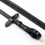 Ride with grip and control using the Lynton 5/8' Rubber Reins - durable dimpled rubber, martingale stoppers, and vegetable-tanned leather for strength and comfort.